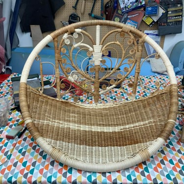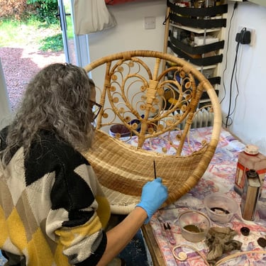 Restoration of antique medallion cane chair. This gorgeous little armchair had the back panel broken, including both the top of the canework and the wooden central medallion. We replaced and disguised the missing section of the wooden medallion and wove back the cane panel. A real challenge, as the medallion design is one of the most difficult to carry out in hand-caning but such a rewarding job as the pattern is truly beautiful. Quite a statement piece, loved working on it!